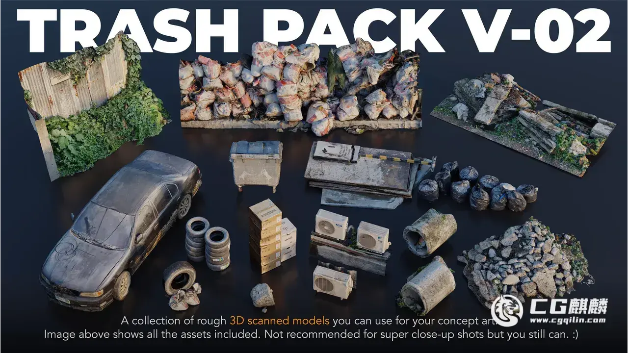 Trash Pack V-02 垃圾处理场景套件。这套件包含多种垃圾和废品相关的3D模型,非常适合用于游戏、电影、短视频、虚拟制片等项目。