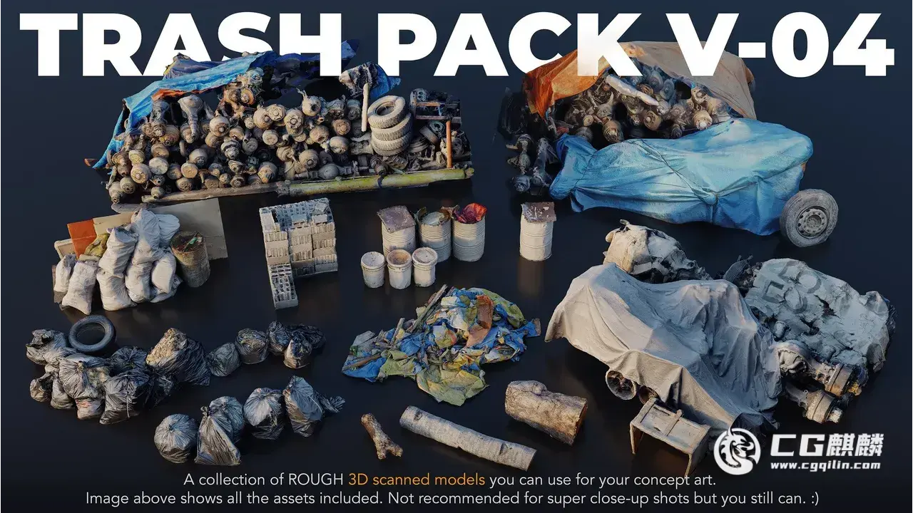 Trash Pack V-04 垃圾处理场景套件。这套件包含多种垃圾和废品相关的3D模型,非常适合用于游戏、电影、短视频、虚拟制片等项目。