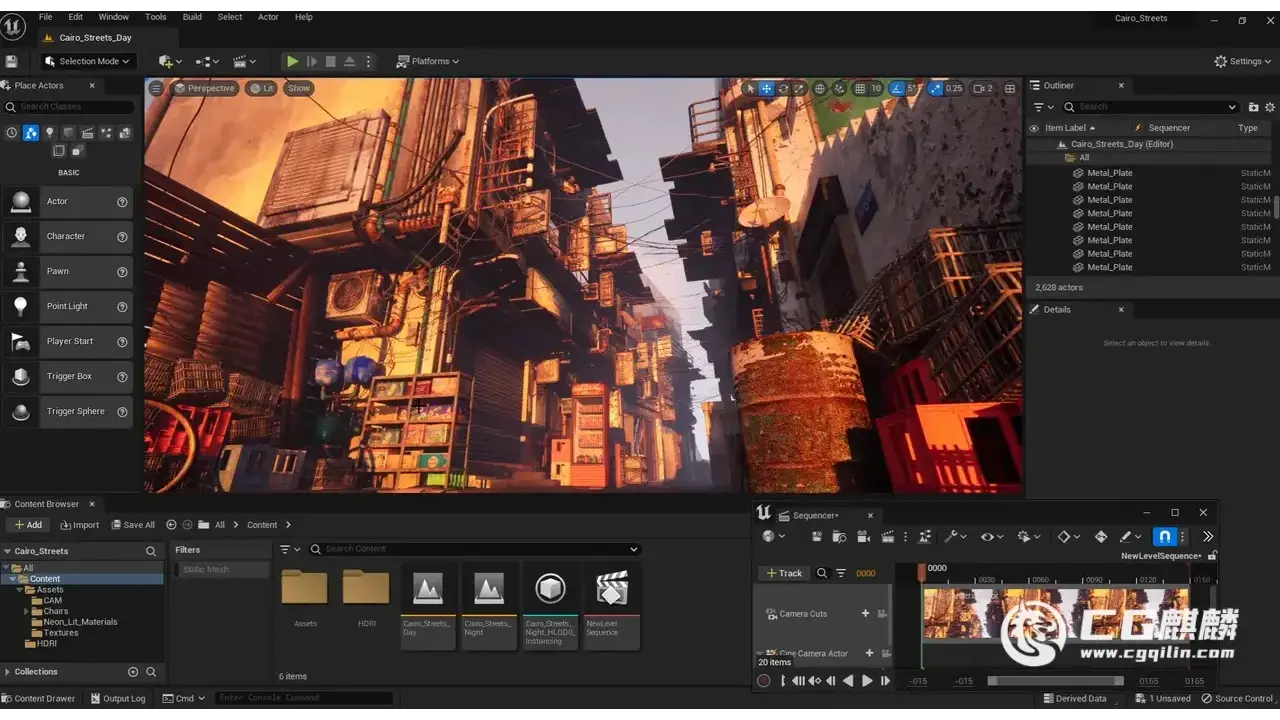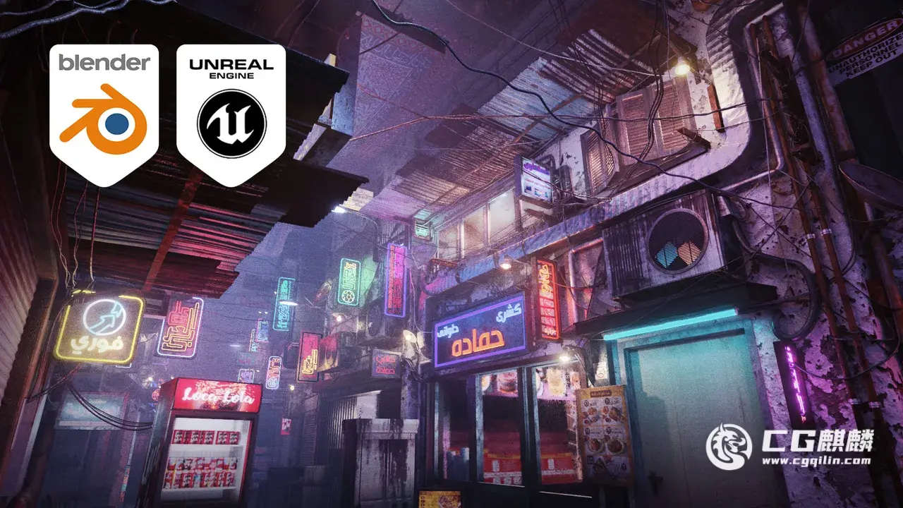 以古埃及开罗为背景的赛博朋克城市场景素材包,内含约 3000 件物品(含复制件),包括动画相机和动画霓虹灯牌,支持昼夜两套完整灯光场景,可用于电影和游戏制作,大多数设备上渲染速度非常快。同时提供 Blender 和 Unreal Engine 5.1-5.4 两种格式。