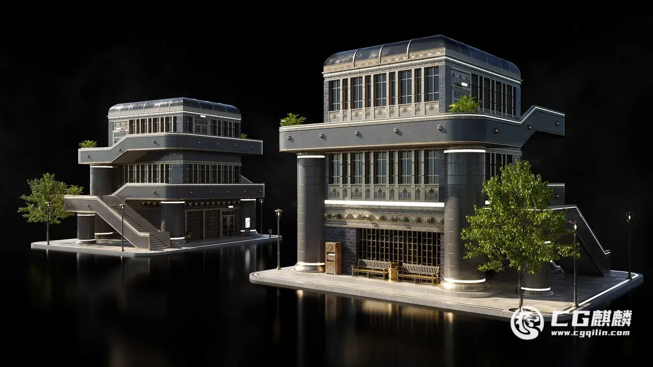 Kitbash3d 出品的黑色未来主义(Noir Futurism)3D套件。这是一套高品质的黑色未来主义风格场景套件,非常适合用于游戏、电影、短视频、虚拟制片等项目。